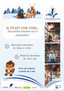 nous vous offrons de doux moments de contes d’hiver bien au chaud sur la mezzanine.